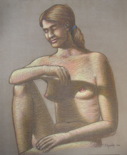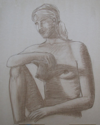 That worked well. It allows the ability to rough it in and make changes, and once satisfied to put on the finishing layer without creating a muddy mess. I will try the Sennelier’s at life drawing group once a better selection of colors in my tool box.