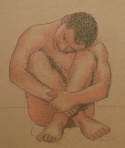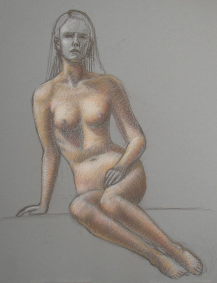 Since I liked the looks of the pastel pencil, I wanted to try it with a figure drawing. It would allow me to do smaller life drawings, because of smaller more accurate tip. I first put in my darks and started the mid-range tones. I’ll finish it up tomorrow. 8.5″x10″ Brown Pastel Paper
