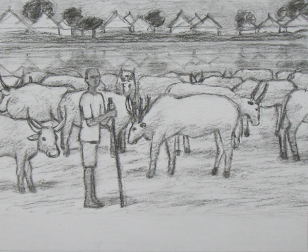 I’m worked out the detail on one of the pages of the Picture Book about “The Lost Boys of Sudan.” Cattle herding is central to the life of the South Sudanese. Next I will do a pastel of the picture. I would probably normally work out details on more pictures first, but I wanted to present a color rendering at the next meeting.
