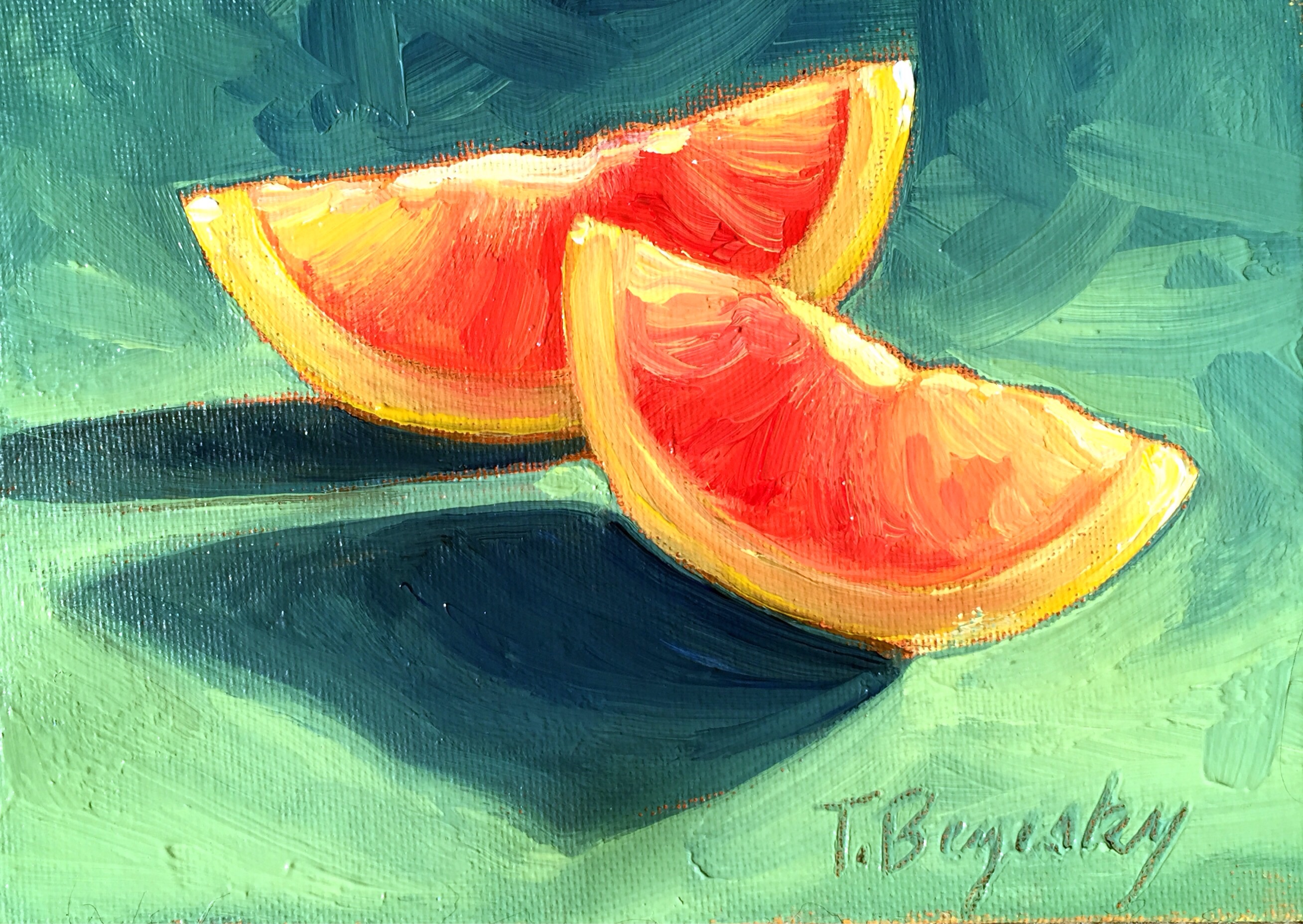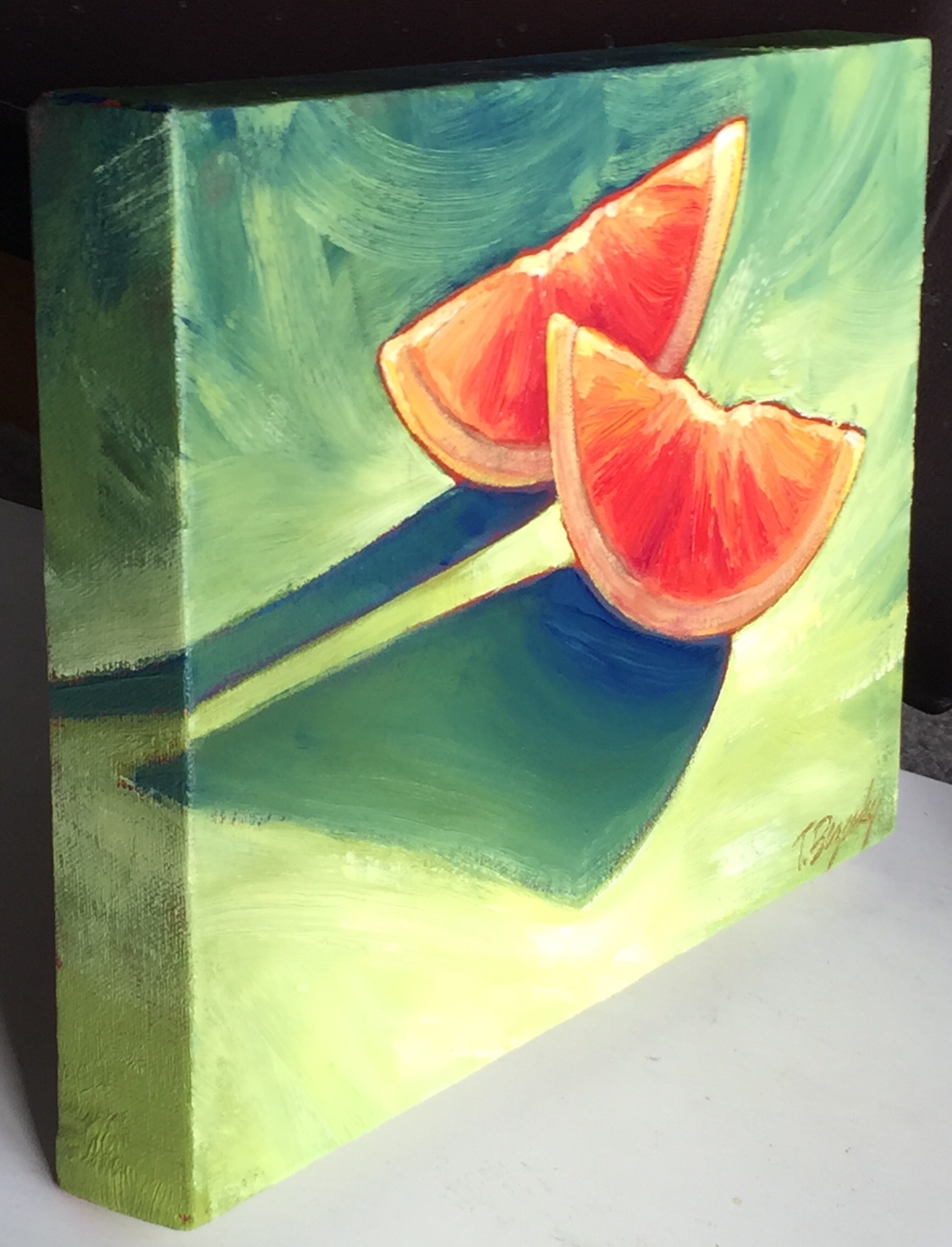I want adapt myself to the use of the palette knife. It’s great fun! There have been other points in my life when I’ve tried it, and I wasn’t satisfied with my work, but these last few times I’ve decided I can make it work! 6×6″ Acrylic on stretched canvas.