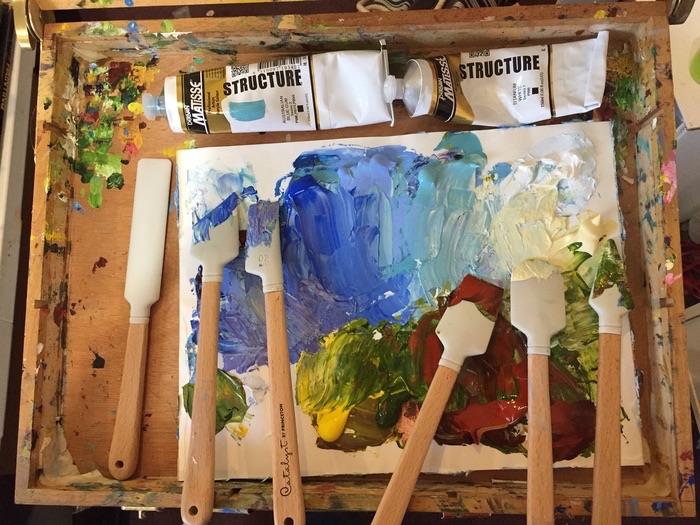 I played with a new tool today! It falls between a palette knife and a brush. They are most similar to painting with a spatchella. They are called Mini Blades. They have a little bit of a lighter touch than a palette knife.