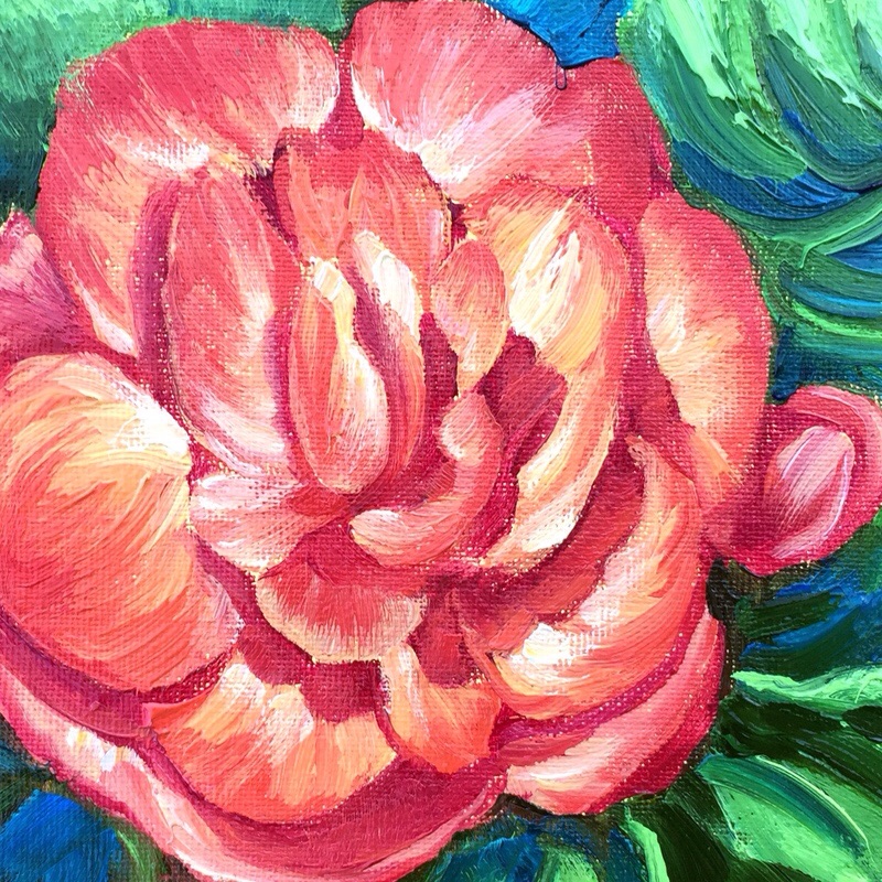 On my easel today is a painting of Begonias, stirred into action by the Spring fever I’m feeling. 6″x6″ stretch Gallery Wrap Canvas.