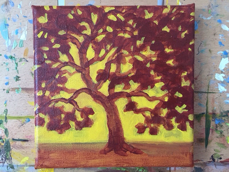 Now I’ve added the clumps of leaves. The underpainting helps me work out the shapes, and negitive space.
