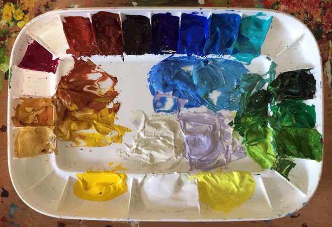 Extras- Ultramarine Blue, Cerulean Blue, Teal, Green Medium, Cadmium Yellow Primrose, Naples Yellow Lt, Red Oxide, Van Dyke Brown