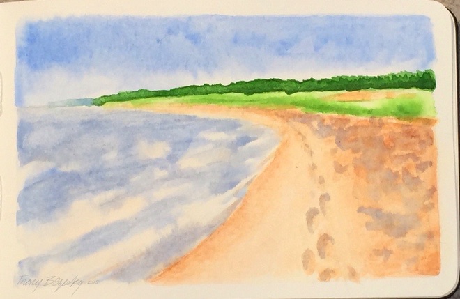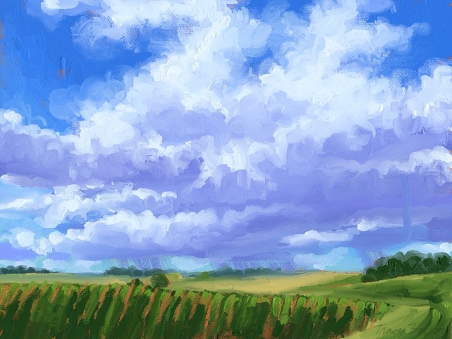 I’m on vacation a good part of July, but back at home at the moment. I went to make adjustments on my underpainting of the first version, and realized the lightly textured board was probably not going to be to my liking for this. Here is a redo of my underpainting on stretched canvas 18″x24″ I like the new composition better, I wanted more sky,a bigger storm cloud, and a lower horizon.