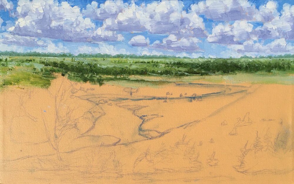 This study 10″x16″, Upcoming commissioned painting 30″x48″.