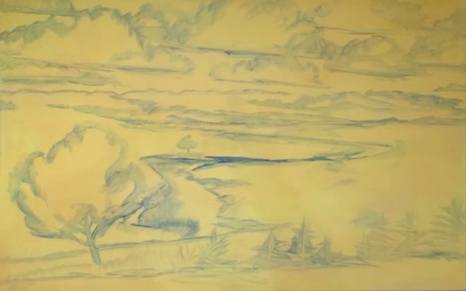 I’ve made progress on the big canvas. 30″x48″ The middle and foreground trees are next.