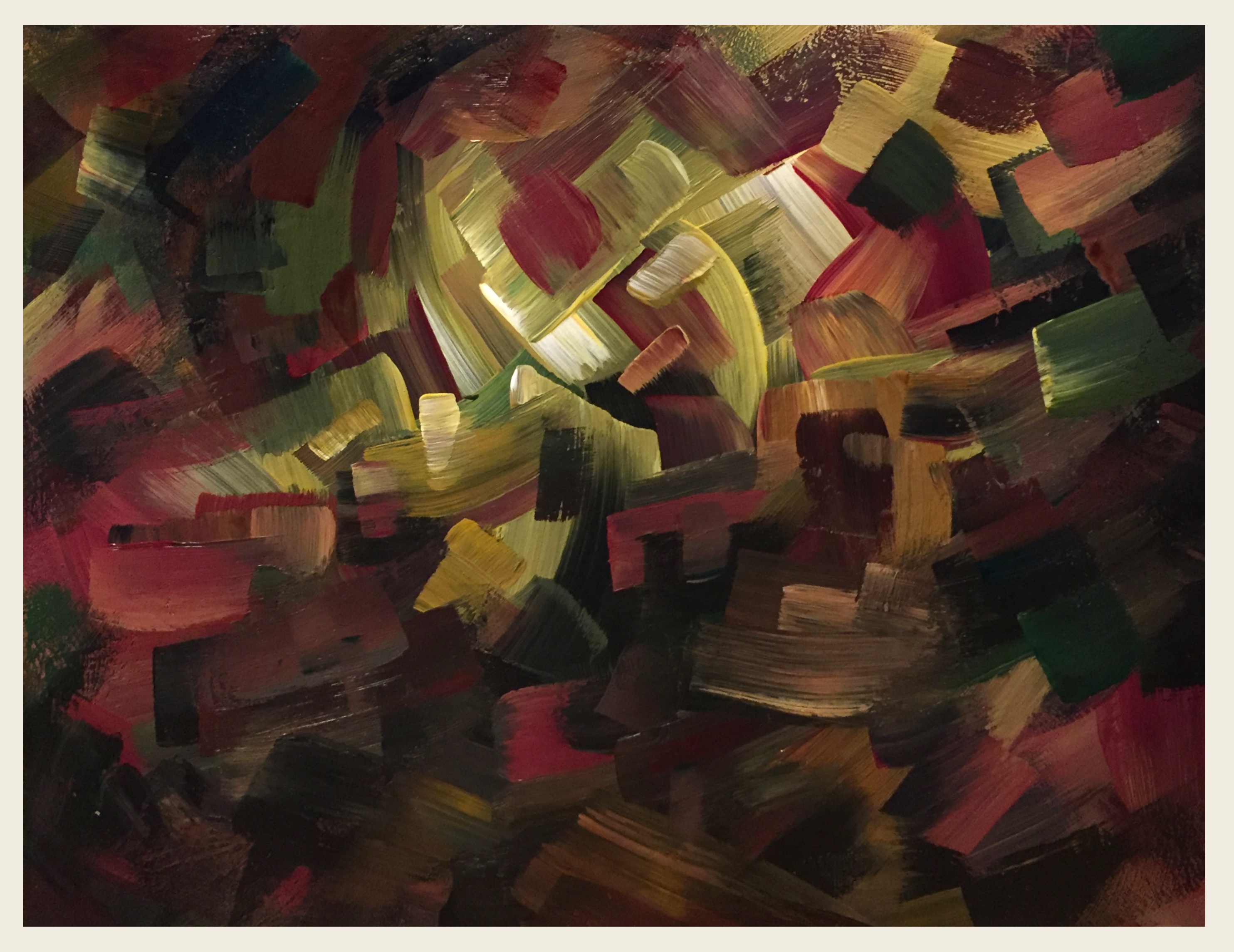 Intuitive Painting is painting without a plan. Letting loose and seeing what happens. I never have painted anything like this before. The name came after the result. I will explore painting like this more.